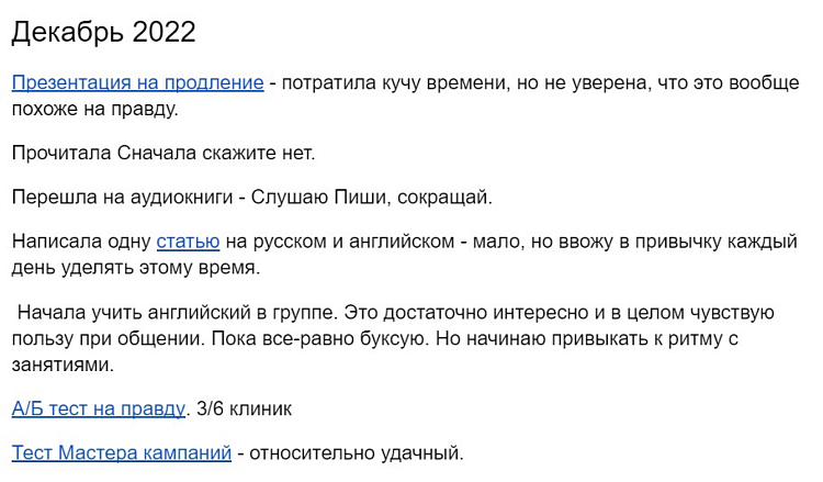Например, наш директор по счастью предложила изменить статью расходов на покупку ноутбуков сотрудникам. Она круто провела презентацию перед руководителями, модерировала дискуссию и добилась результата за одну встречу. Это я обязательно отмечу на следующей планёрке. Аналогично подсвечу и недоработки, если такие были».