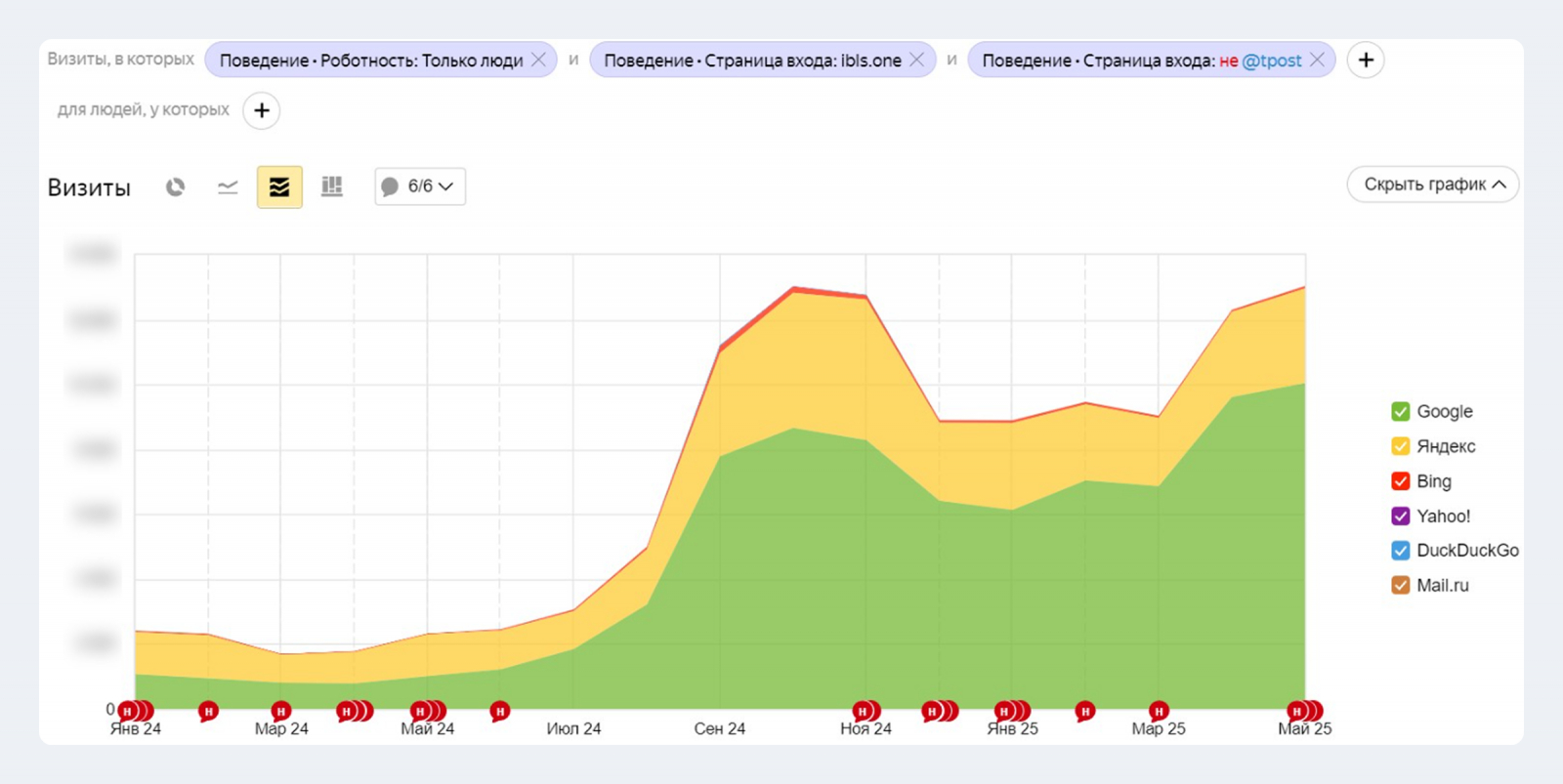 Конкретных KPI по трафику не было, но мы сделали прогноз, который устроил заказчика. Спойлер: мы его превысили.