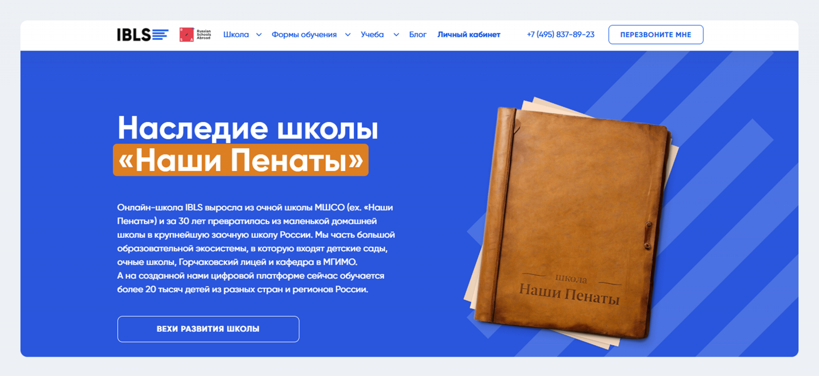 IBLS — онлайн-школа для детей. Клиент предлагает полноценное образование с первого по одиннадцатый класс на заочной или семейной форме обучения с возможностью выбрать индивидуальную программу. Также есть программа IBLS+ — онлайн-занятия в малых группах по отдельным предметам, которые могут дополнить обучение в обычной школе.