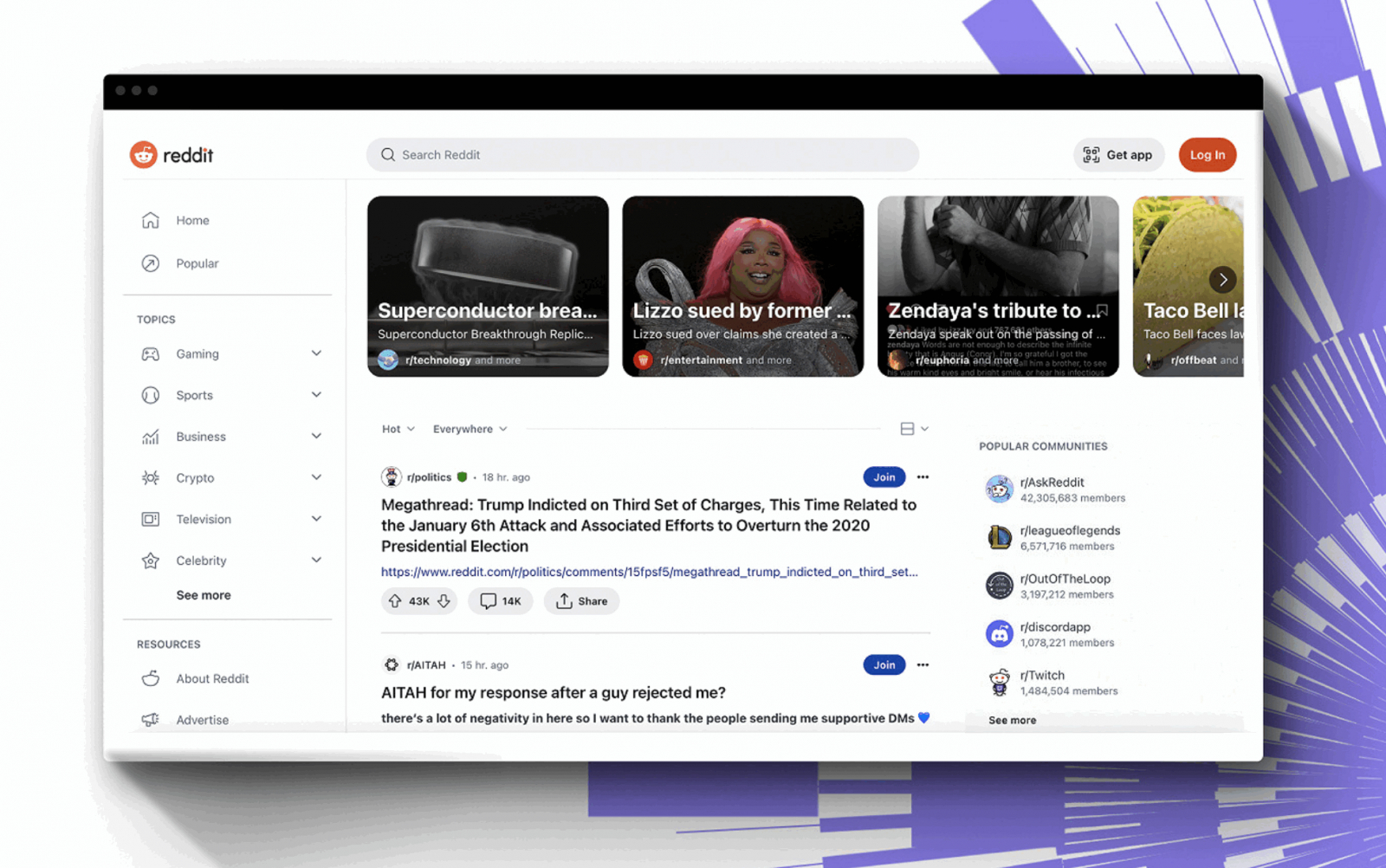 Reddit — платформа, в которой сочетаются признаки соцсети и форума. Здесь пользователи обмениваются мнениями на разные темы. На Reddit широкая аудитория с разнообразными интересами — от маркетинга до криптовалют, от спорта до развлекательного контента, поэтому среди нее наверняка найдутся ваши потенциальные клиенты.