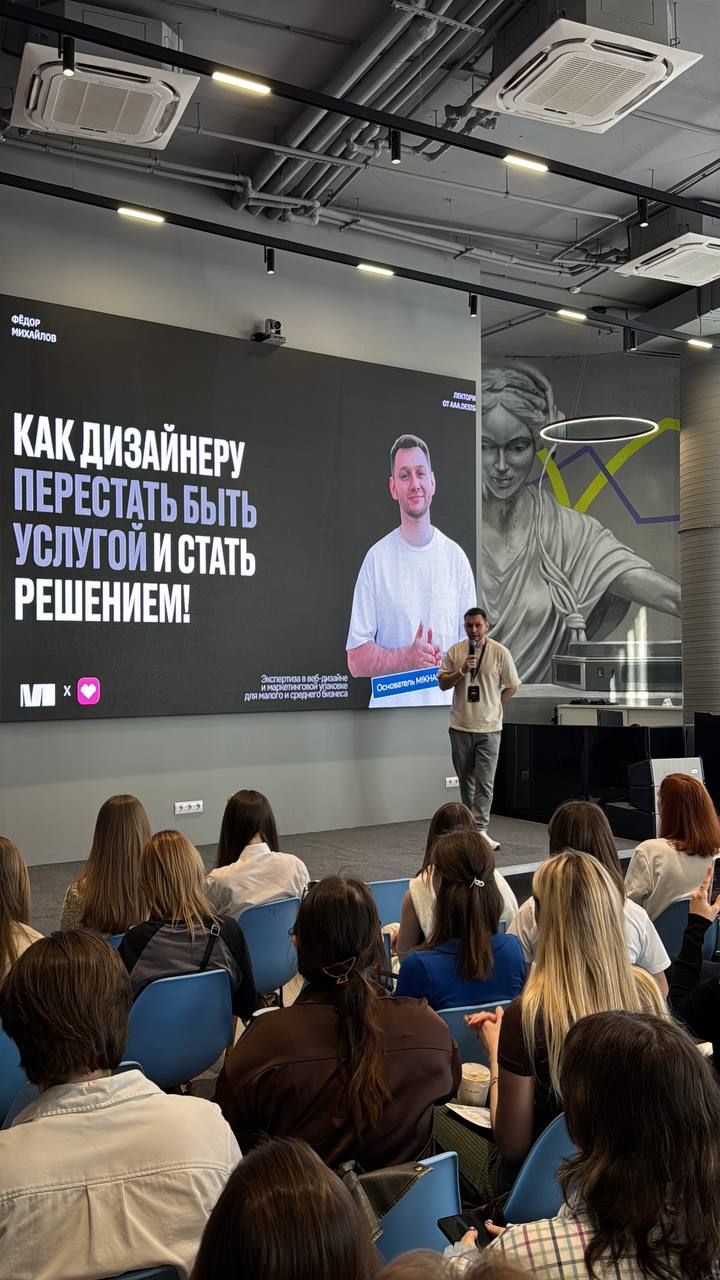 Прошло круто! Фёдор выступал с темой «Как дизайнеру перестать быть услугой и стать решением» и после выступления примерно еще 2 лекции отвечал на вопросы. Вот что значит удачно выбрать тему 🤣