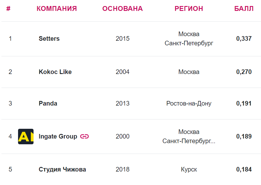 Редакция Likeni опубликовала результаты рейтинга известности SMM-компаний 2024 года. Ingate Group заняла 4 место в рейтинге, обогнав 279 агентств.