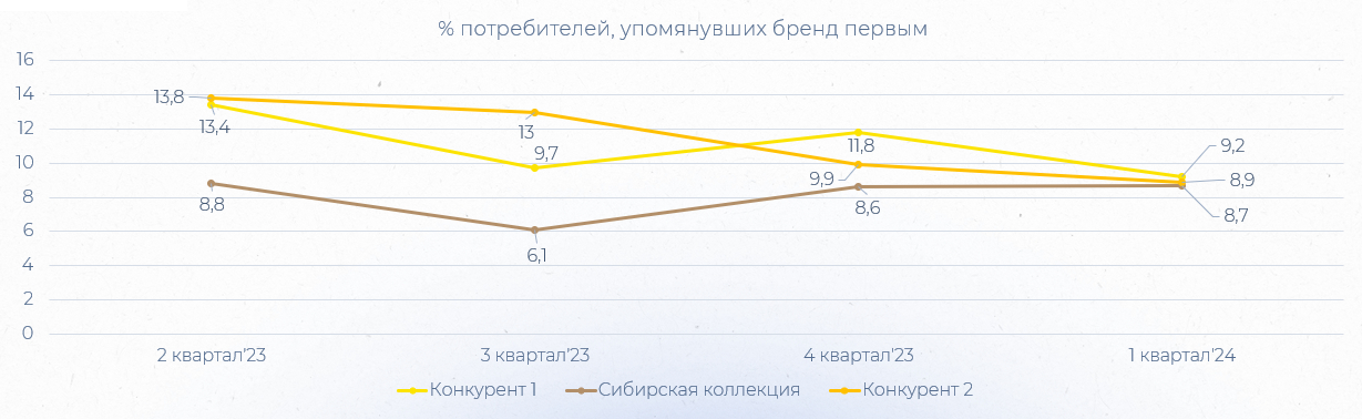 Мы оценили позиции бренда относительно конкурентов по регионам в динамике, чтобы определить зоны для усиления нашей доли.