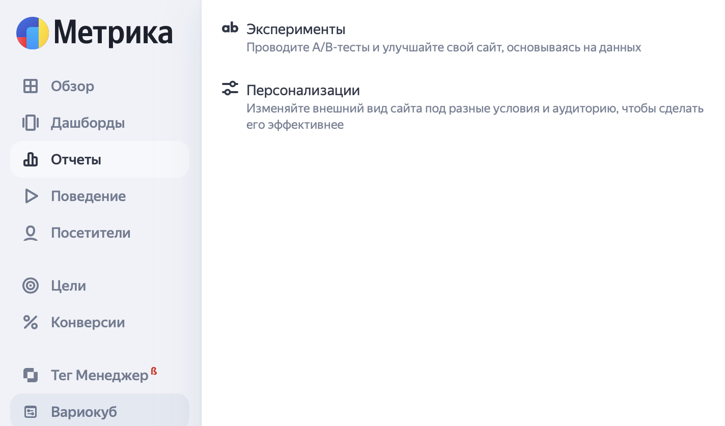 Varioqub помогает проводить Эксперименты, то есть те самые контролируемые A/B-тесты, и Персонализацию, то есть настройку страниц или отдельных ее элементов с учетом пользовательского поведения.