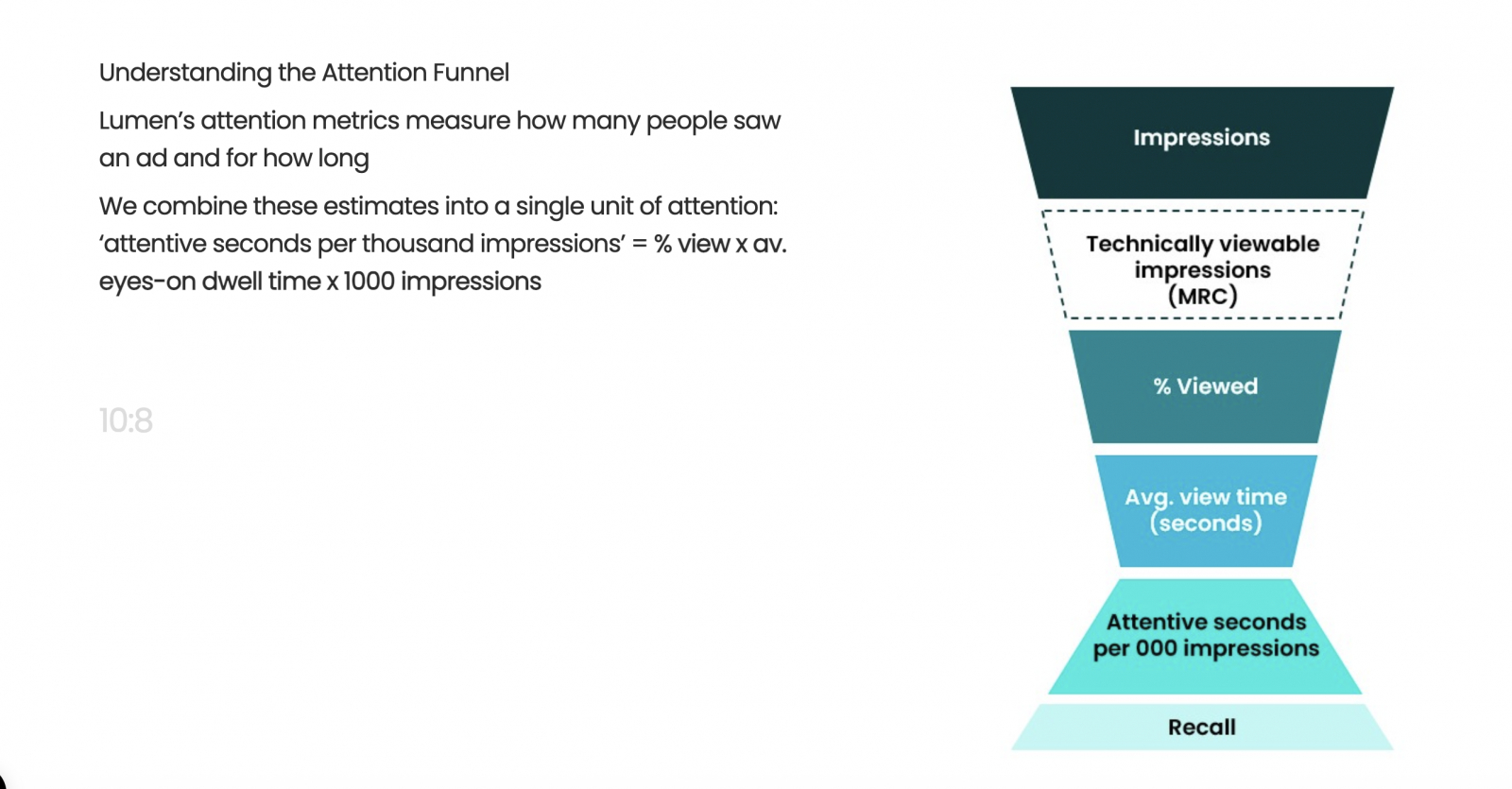 По данным исследования, между ростом метрики Attention на 10% замечена корреляция с ростом метрики Brand Recall, то есть узнаваемостью бренда, на 15–20%.
