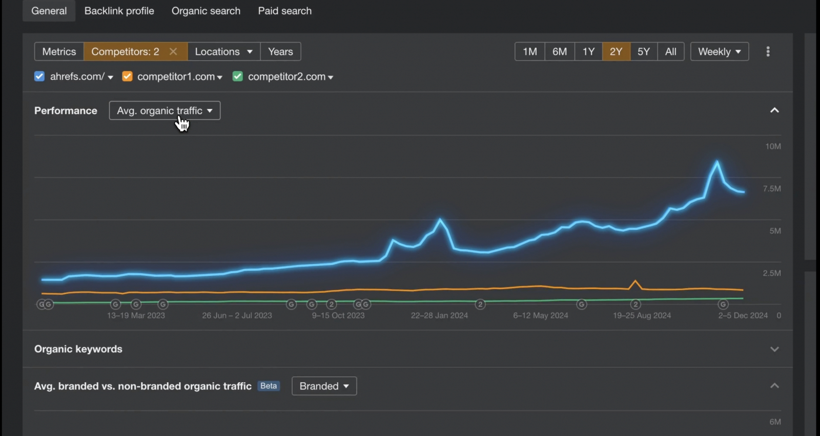 - Рост или падение органического трафика по сайту в целом или по его разделам с горизонтом в несколько месяцев.