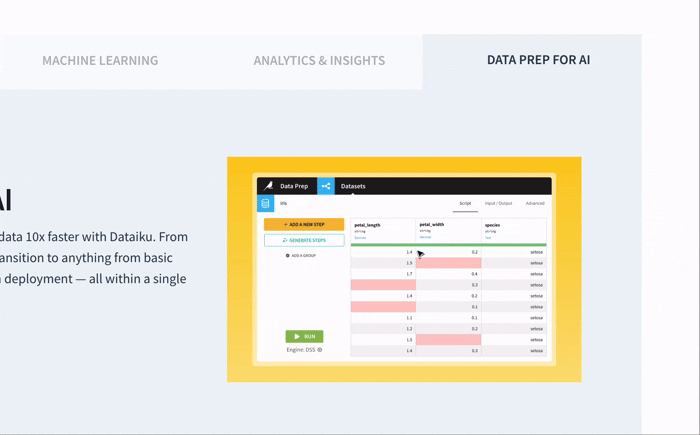 - Интеграция моделей и продуктов в рабочие процессы: от прототипов до фактического внедрения в продакшн, машинного обучения и API-интеграций. Реализуется разными способами, например, с использованием инструментов. Пример — The Universal AI Platform. Платформа для совместной разработки, оркестрации и развертывания готовых решений позволяет внедрять ИИ-агенты, машинное обучение и проводить подготовку данных для внедрения ИИ в бизнес-процессы: