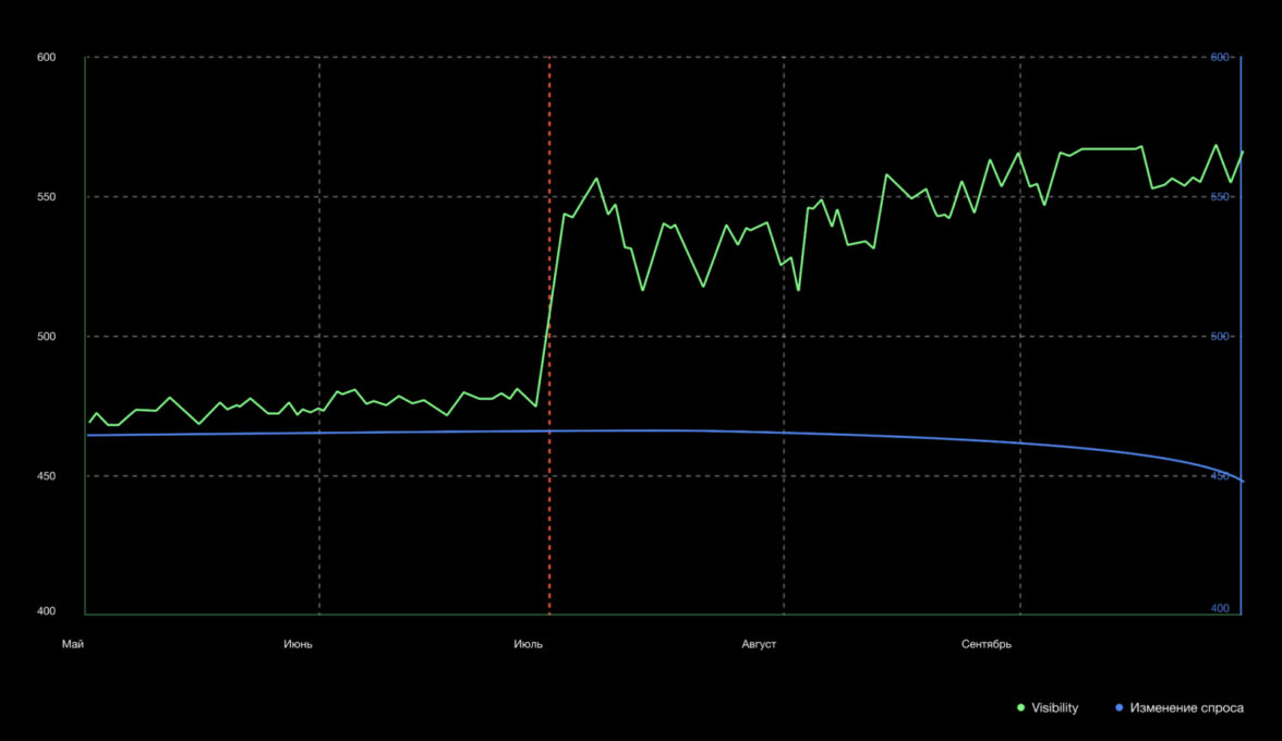 Алгоритмы ранжирования здесь менее предсказуемы, поэтому начали продвижение с пяти поисковых запросов, протестировали эффективность и лишь затем подключили следующую группу запросов.