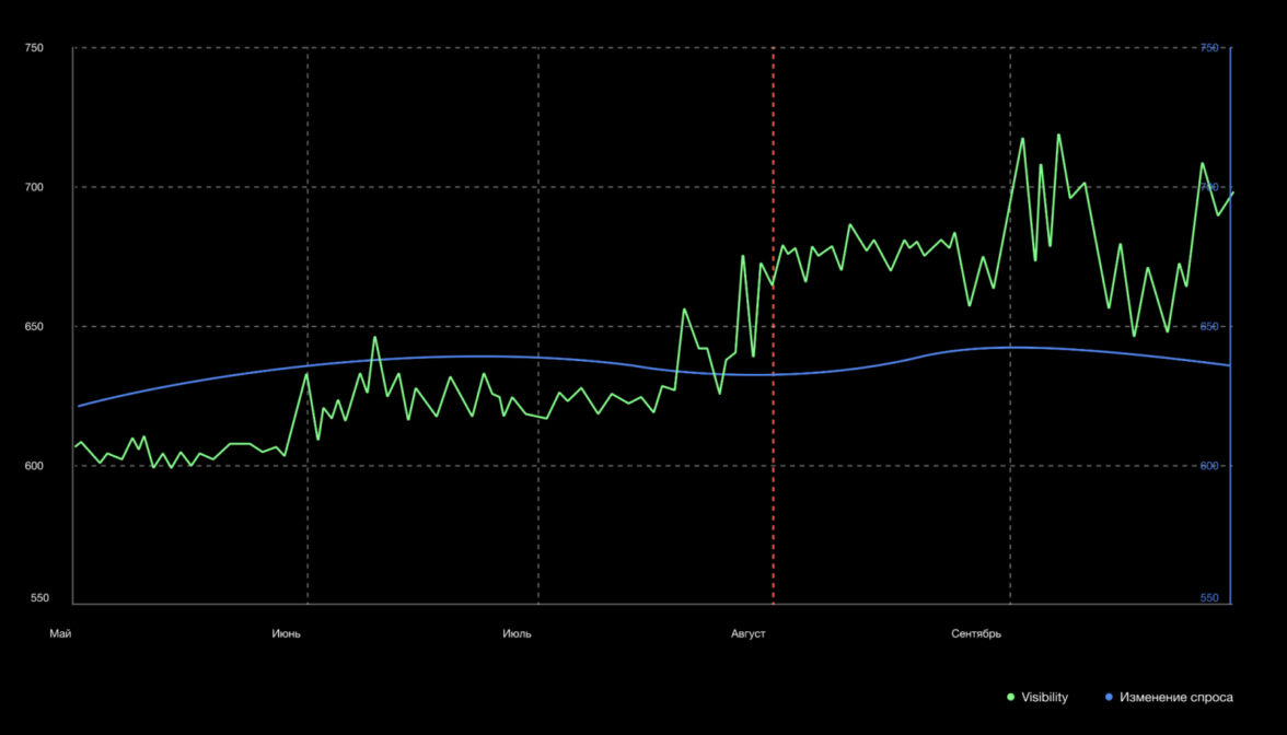 Из графиков видно, что в вертикали есть приложения с более высоким visibility, а значит у «Купибилет» есть потенциал для роста — за счёт повышения видимости можно значительно нарастить органические установки.