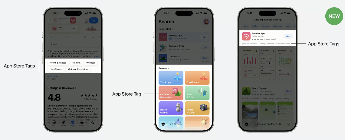 В App Store Connect появилась новая возможность — настраивать теги (App Tags). Это короткие текстовые метки, которые отображаются в поиске и на странице приложения. В Apple считают, что теги помогут пользователям быстрее понять суть продукта, а алгоритмам — точнее определять, в каком контексте и кому показывать приложение.