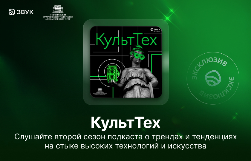 Во втором сезоне подкаста «КультТех» от Александринского театра и HiFi-стриминга Звук представители культуры и топ-менеджеры IT-компаний обсуждают горячие тренды и тенденции на стыке высоких технологий и искусства.