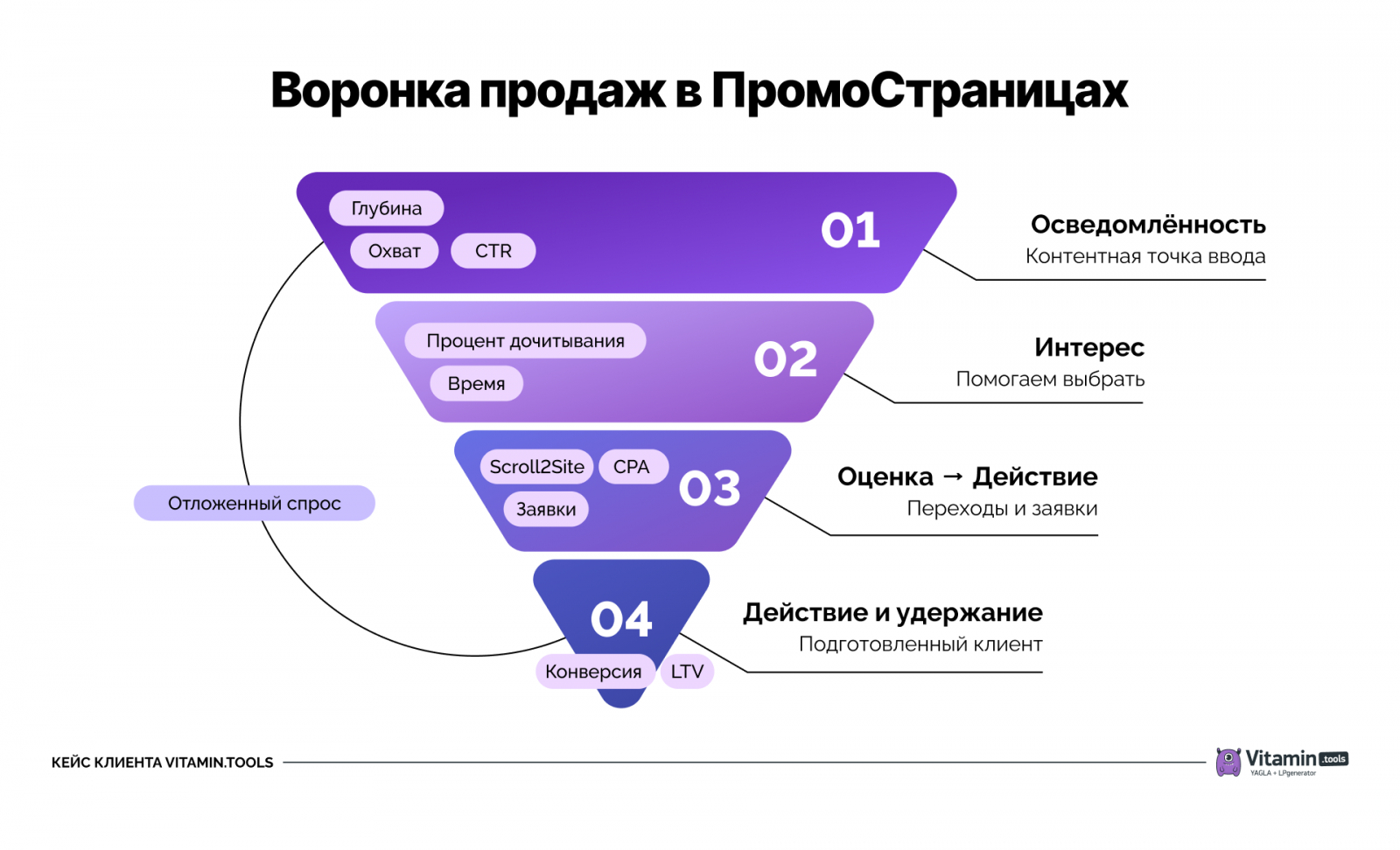 Работа с Промостраницами в 2026 году требует четкого понимания, на каком этапе воронки находится пользователь. У каждого этапа своя логика работы и своя экономика. Если оценивать их по одинаковым метрикам, картина искажается: верхний этап будет казаться слишком дорогим, а нижний — единственно эффективным. Когда стратегия соответствует готовности аудитории, ПромоСтраницы начинают работать как управляемый инструмент продаж, а не как источник случайного трафика.