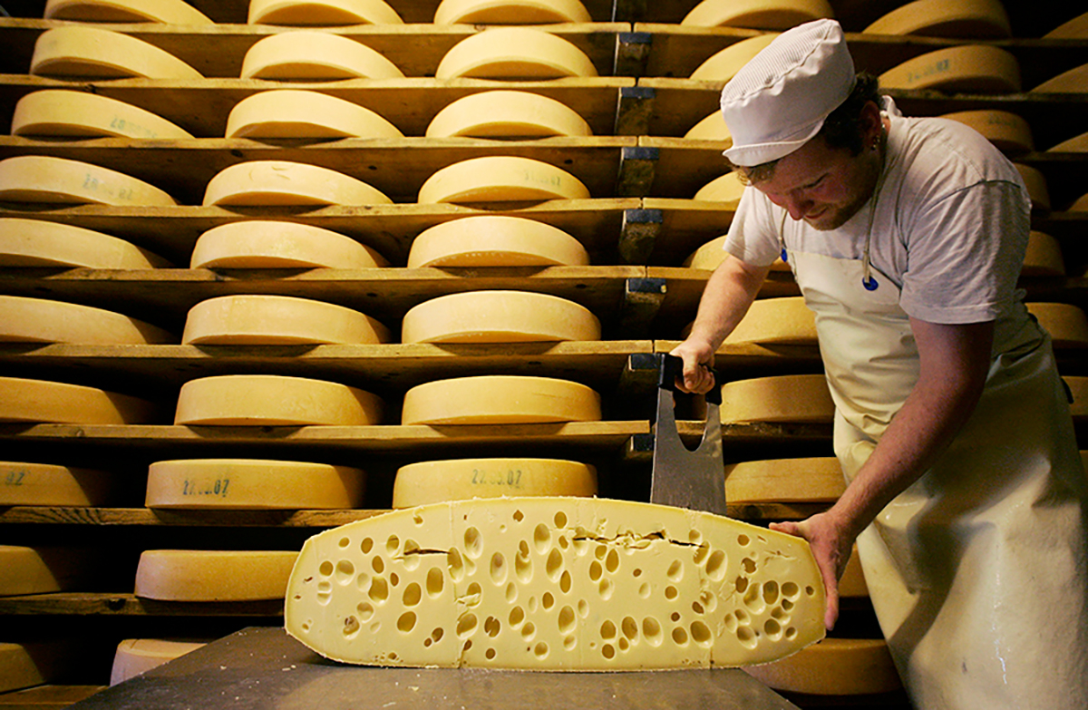 Швейцарский сыр эмменталь также относится к сырам натурального созревания. Его отличительной особенностью являются крупные дырки, которые образуются в процессе ферментации. Эмменталь имеет мягкий, слегка сладковатый вкус и часто используется для приготовления фондю или как ингредиент для сэндвичей.