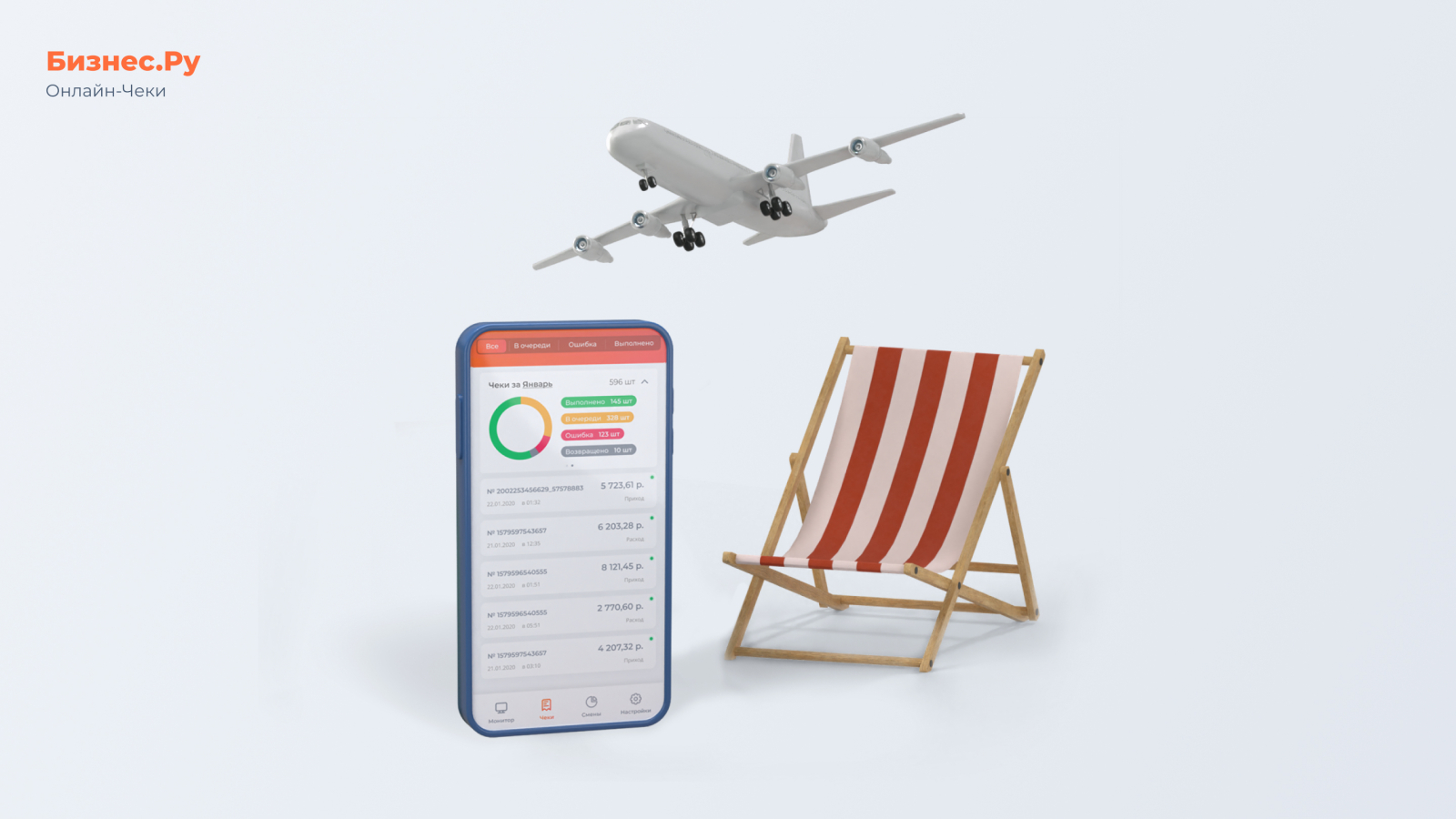 Решение. Для удаленного управления бизнесом можно использовать личный кабинет Бизнес.Ру «Онлайн-чеки». Он позволяет контролировать и анализировать деятельность компании онлайн с телефона или компьютера. Также детализированные отчеты по транзакциям можно формировать и экспортировать через личный кабинет платежно-кассового сервиса.