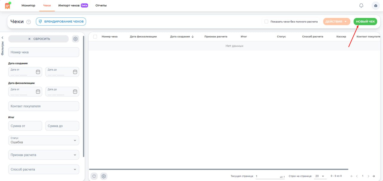 Необходимо зайти в раздел «Чеки» и нажать на «новый чек».
