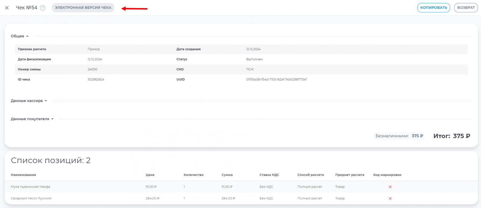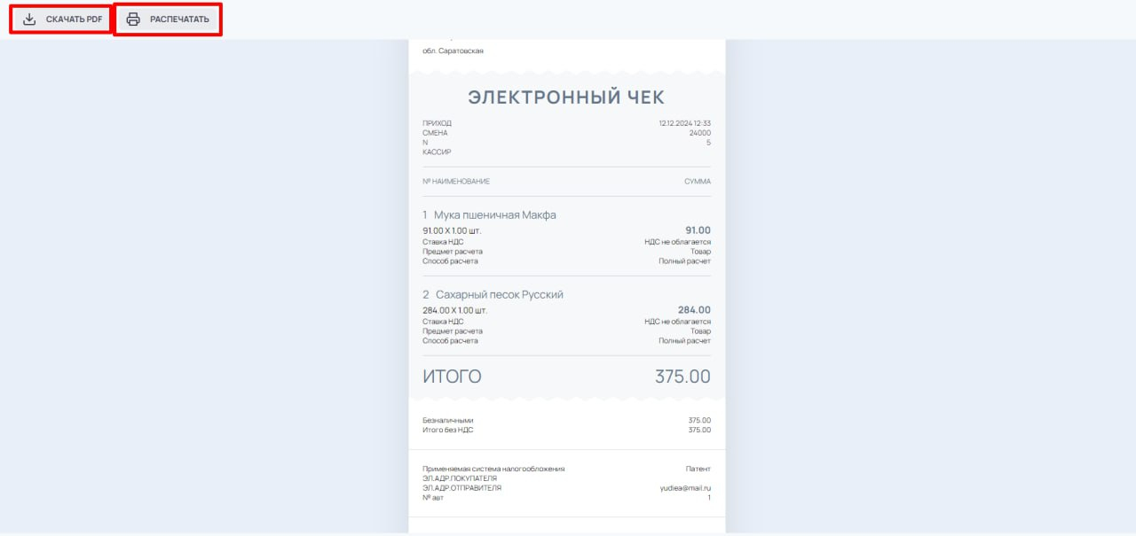 И выбрать его электронную версию. Кассовый документ автоматически сформируется и направится клиенту и в ФНС.