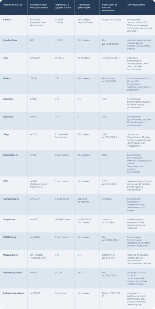 При выборе банка учитывайте тарифы, лимиты, выпуск бизнес-карт и дополнительные услуги.
