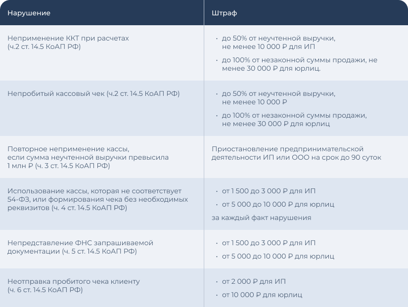 Ответственность за нарушение закона 54-ФЗ предусмотрена статьей 14.5 КоАП РФ.