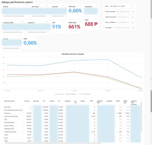 Мы также обращаем внимание на CPO — стоимость одной покупки. Это особенно полезно, когда нужно быстро оценить эффективность акций или отдельных кампаний.