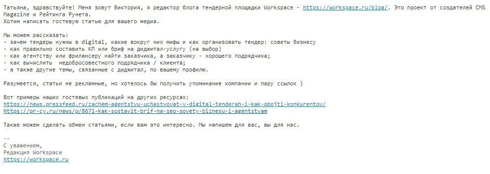 5. Взяли на себя под ключ всю работу над статьями, включая общение с редакторами: от налаживания первого контакта до публикации. По опыту знаем, что эти переписки и обсуждения отнимают больше всего времени, поэтому наши клиенты очень рады отдать нам всю эту рутину. У нас налажены связи с редакторами популярных медиа, и работа идет как по маслу 🙂