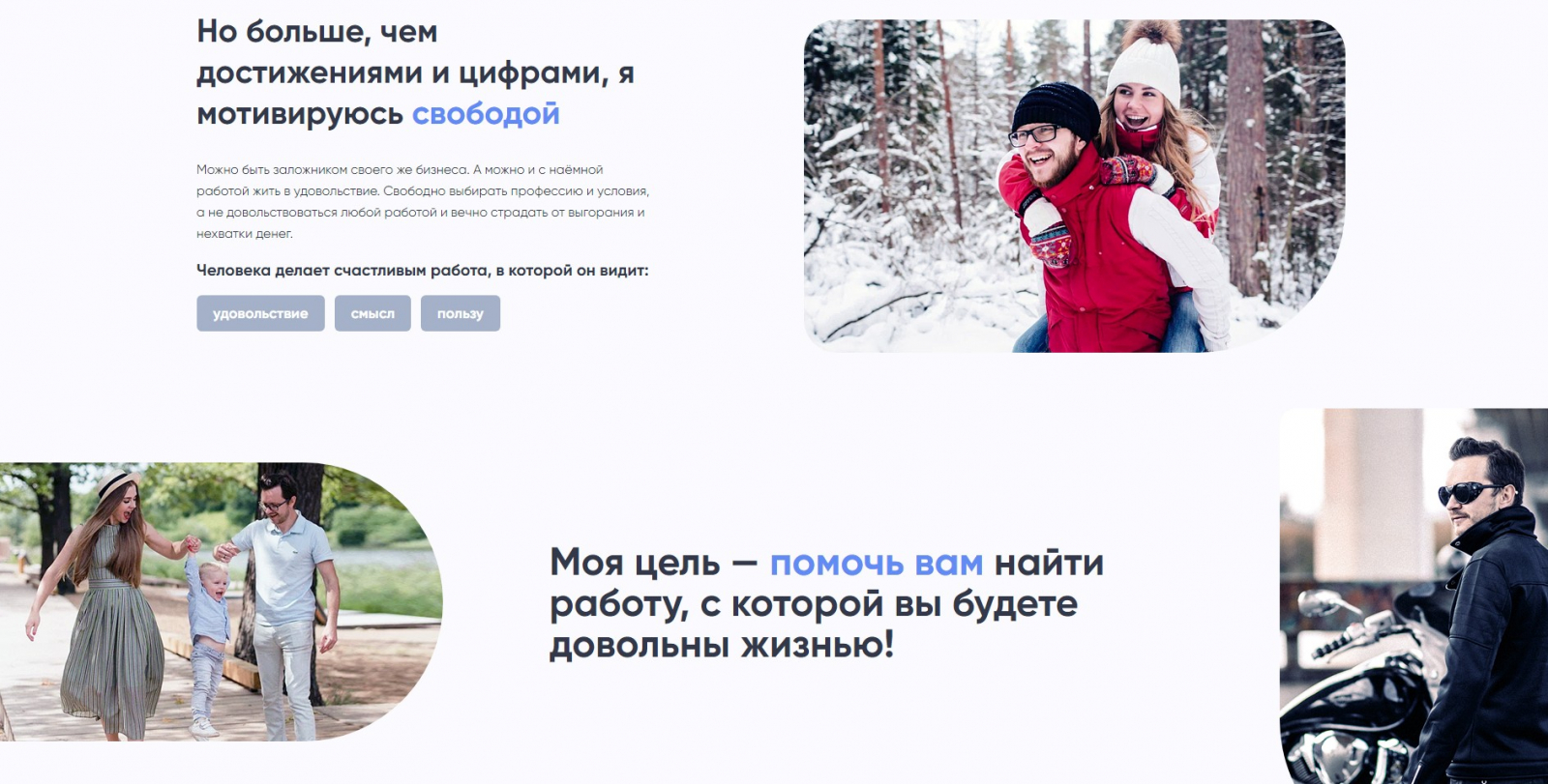 Лендинг для карьерного консультанта не нуждался в таком сложном функционале, как портал 7Hands.com. Однако были свои нюансы: