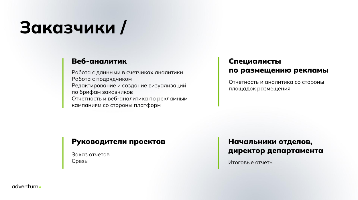Также данными пользуются контент-менеджеры и руководители проектов. У команды появилась возможность отслеживать, какие кампании способствуют достижению поставленных целей. Руководители могут самостоятельно посмотреть необходимые данные, не обращаясь к аналитикам.