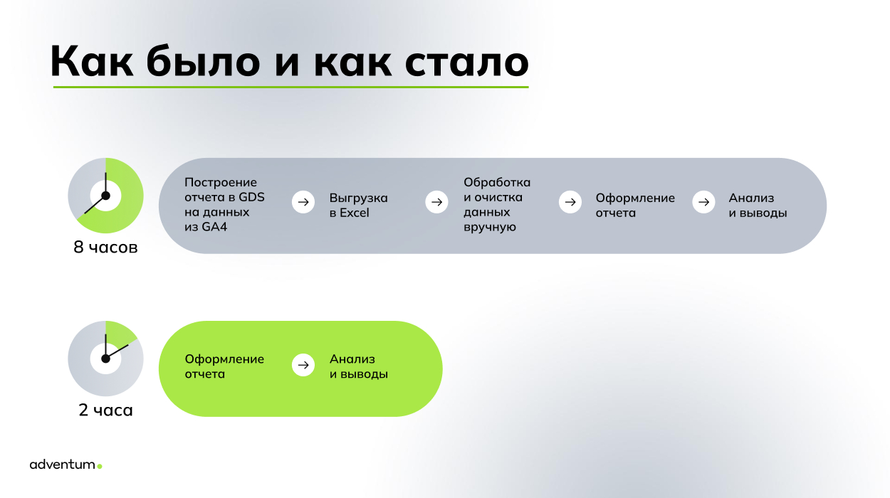 Клиент обратился с проблемой: ручной сбор данных занимал до 8 часов на каждый отчет. Поэтому основной задачей было сократить это время, чтобы освободить ресурсы для анализа и экспериментов.