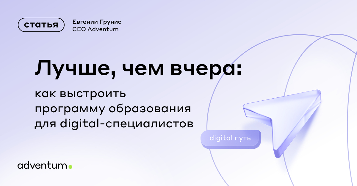 В мире цифровых технологий каждый день появляются новые инструменты, алгоритмы и подходы. Вместе с развитием digital-сферы меняется и система подготовки специалистов: от традиционного высшего образования и курсов повышения квалификации до онлайн-платформ и immersive-обучения. В то же время рынок труда, и digital-отрасль в частности, сталкивается с дефицитом кадров. Евгения Грунис, СЕО Adventum, рассказала, как отрасль может справляться с вызовами соискательского рынка труда и быстрыми изменениями в технологиях.