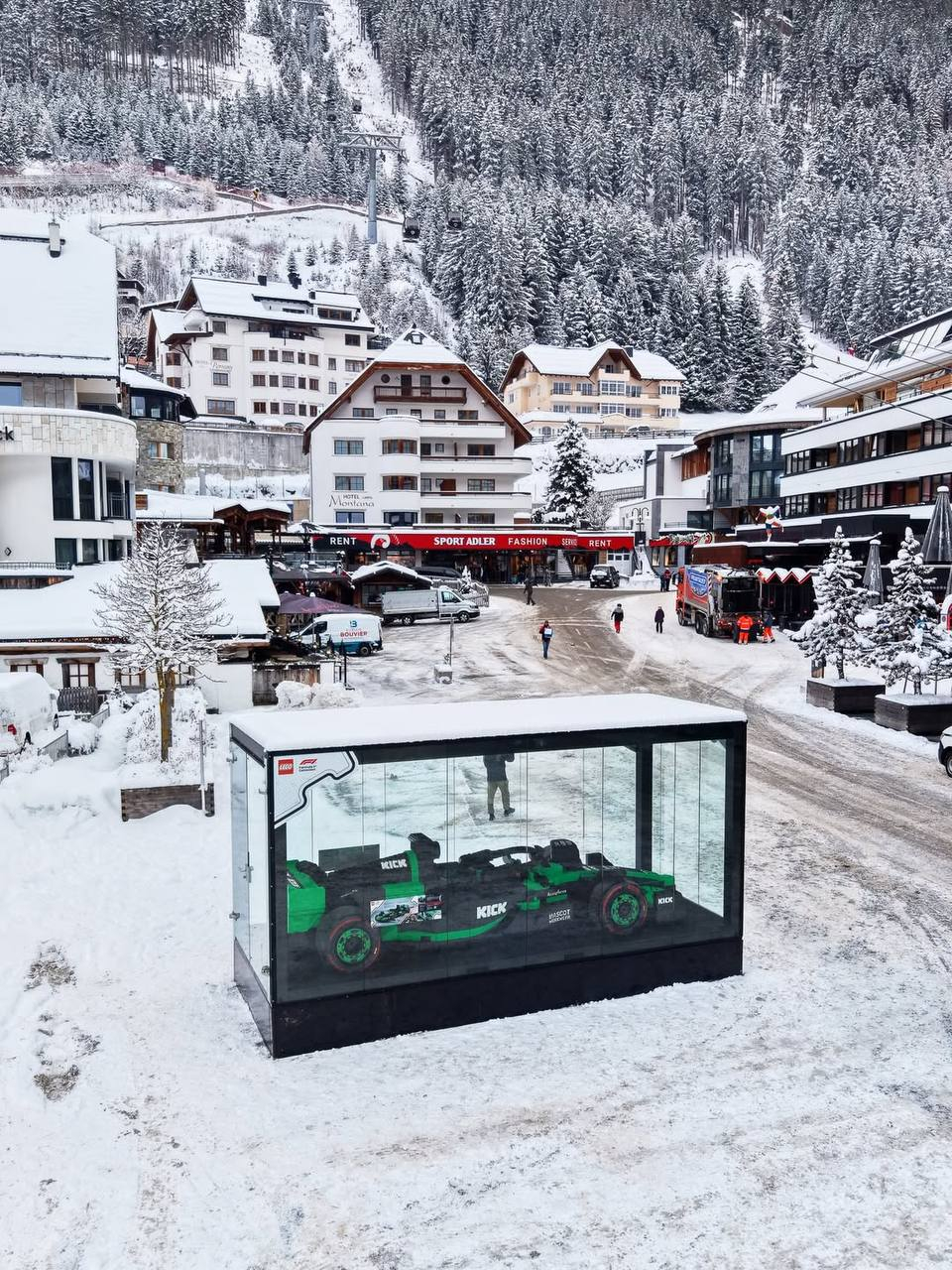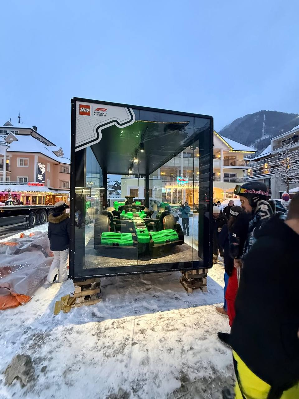LEGO в коллаборации с F1 собрали гоночный болид в натуральную величину из 200 000+ деталей, а потом отправили в путешествие по всему миру. На данный момент фигурка украшает горнолыжный курорт в Германии.