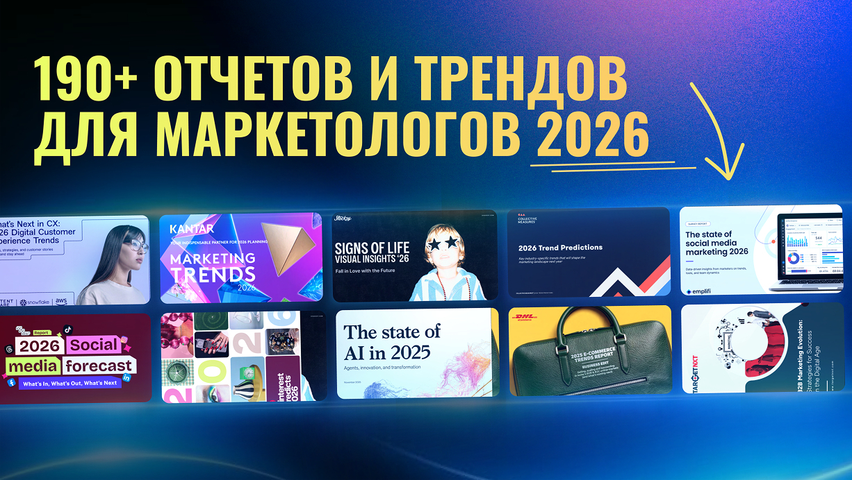 Достаточно изучить монументальную подборку из 190+ отчётов и трендов на 2026. Внутри буквально все что нужно маркетологу: Тренды и прогнозы для всевозможных ниш, дизайнерские инсайты и даже глобальные прогнозы по еде и напиткам. В общем реально маст хэв.