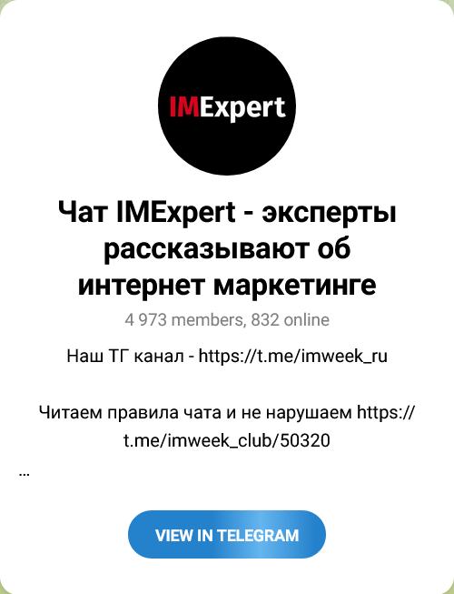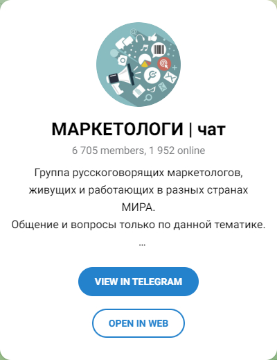 Это сообщество профессионалов в области интернет-маркетинга, где эксперты делятся своими знаниями, новыми инструментами и актуальными тенденциями рынка. В этом чате вы найдете рекомендации по SEO, контекстной рекламе, SMM, e-commerce и email-маркетингу.