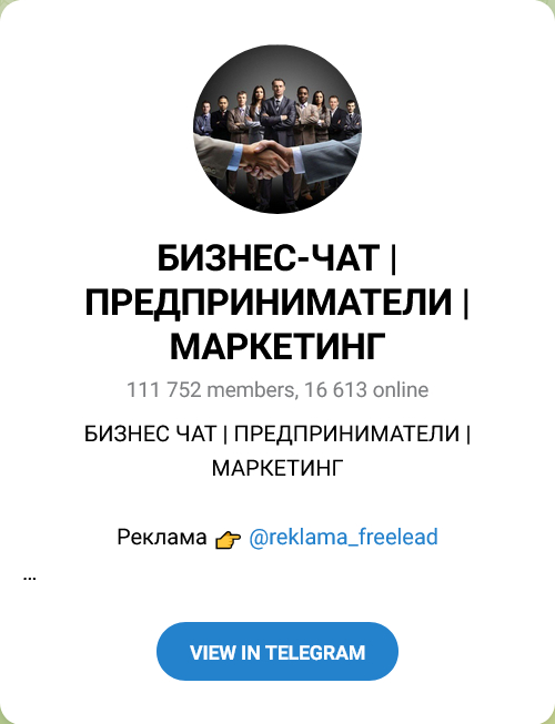 Канал для лидеров мнений и тех, кто готов обсуждать различные бизнес-идеи. Чат, в котором можно получить бесценные советы от профессионалов и опытных предпринимателей.