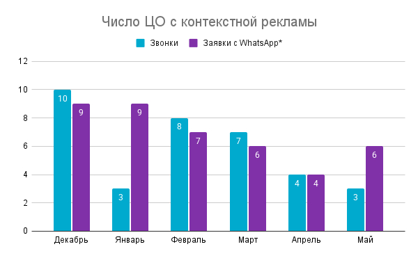 На сайте проекта, кроме телефона и формы обратной связи, есть кнопка для перехода в WhatsApp*. Когда пользователь покидает сайт и продолжает общение в мессенджере, нет возможности напрямую смэтчить целевые обращения с источником, так как мессенджер не предоставляет возможности поставить на себя счетчики.