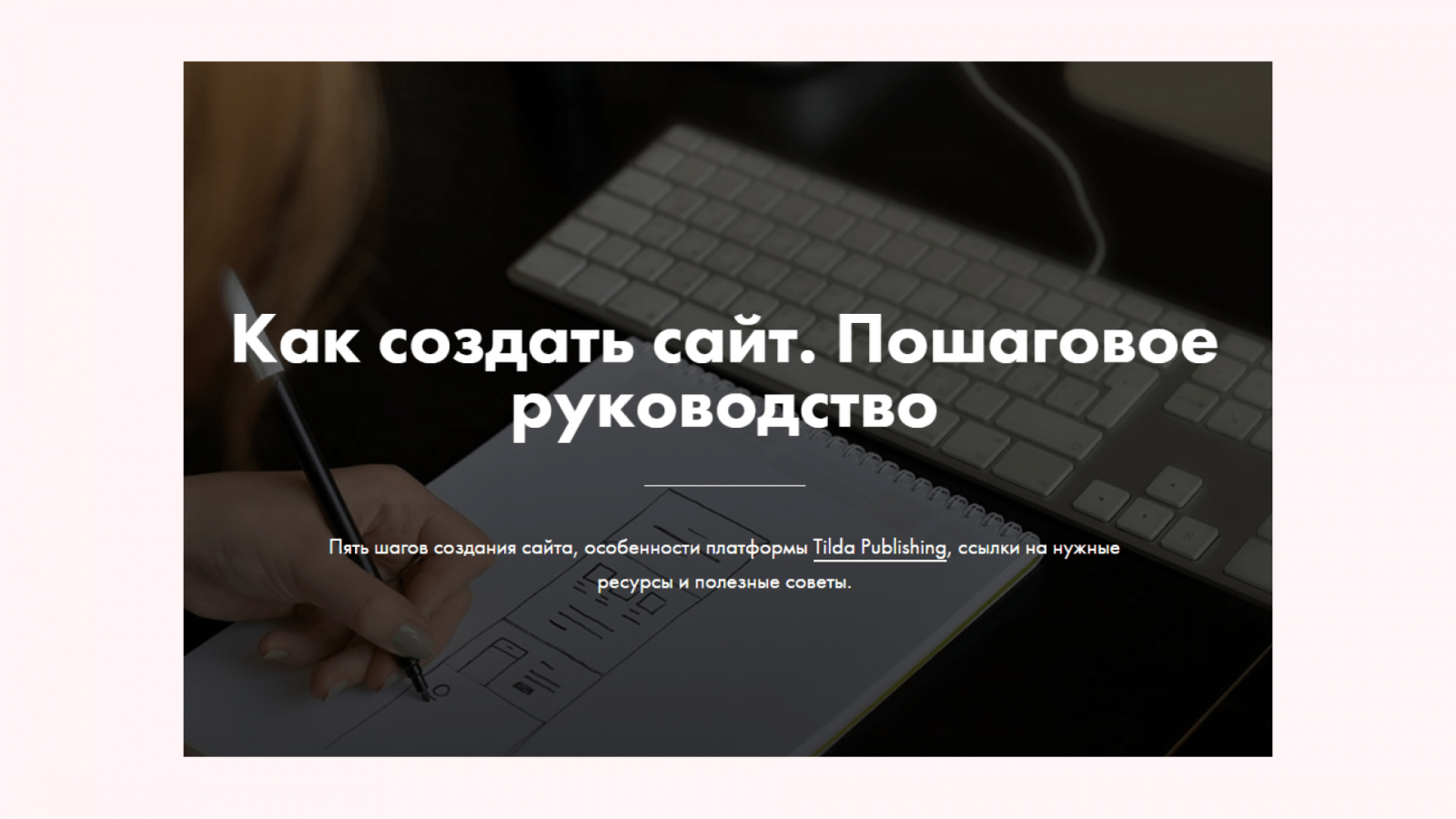 «Тильда», конструктор сайтов. Это вообще три в одном: человеку нужно сделать сайт → он не знает, как → гуглит → попадает на статью «Как создать сайт: пошаговое руководство». Внутри ему показывают и способ решения проблемы (сделать сайт самому), и какой продукт выбрать (конструктор сайтов), и у кого этот продукт купить (у Тильды, потому что в инструкции все делается на ней).