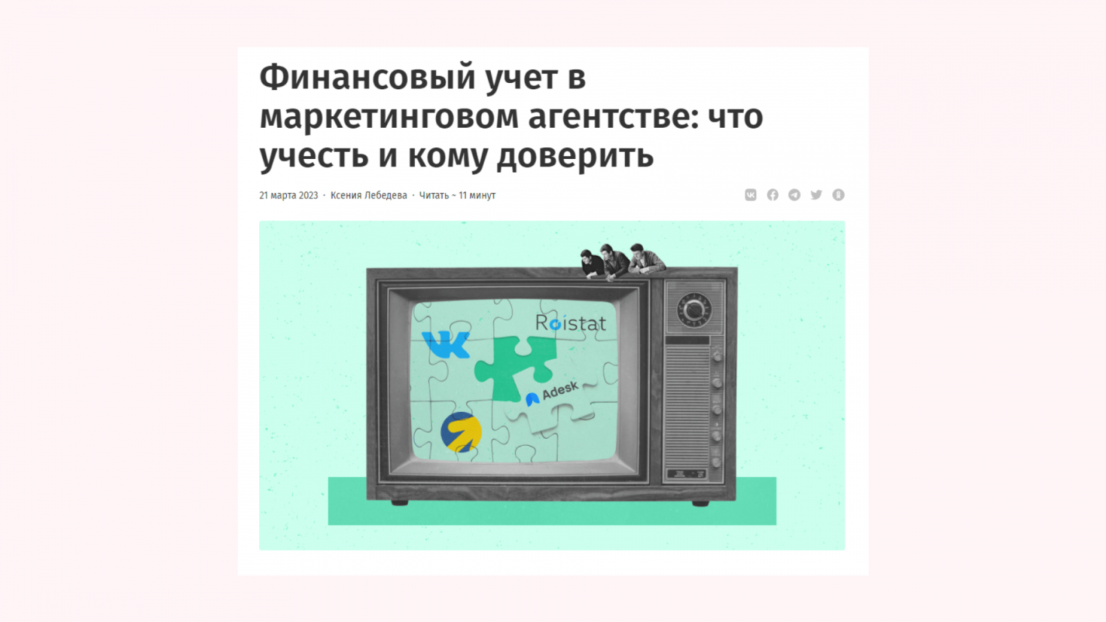 «Адеск», сервис финучета. Руководитель маркетингового агентства понимает, что ему в бизнесе нужен нормальный учет финансов. Но пока он не решил, как именно будет его внедрять. И тут ему попадается статья «Финансовый учет в маркетинговом агентстве: что учесть и кому доверить».