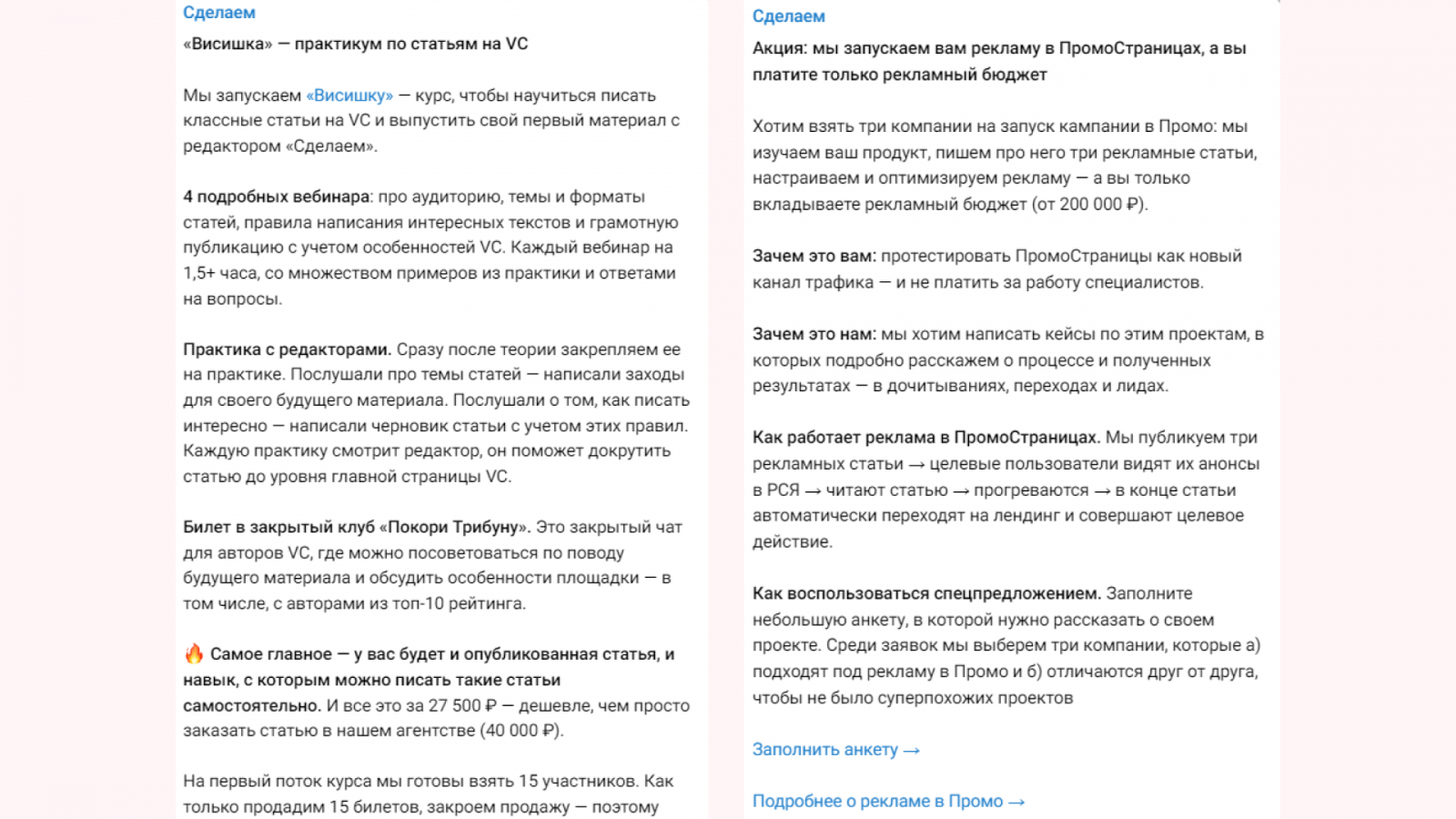 Но прямолинейный заход ≠ плохой заход. Статья попала в подборку лучших публикаций в ПромоСтраницах, а значит, показала хорошие результаты по лидам.