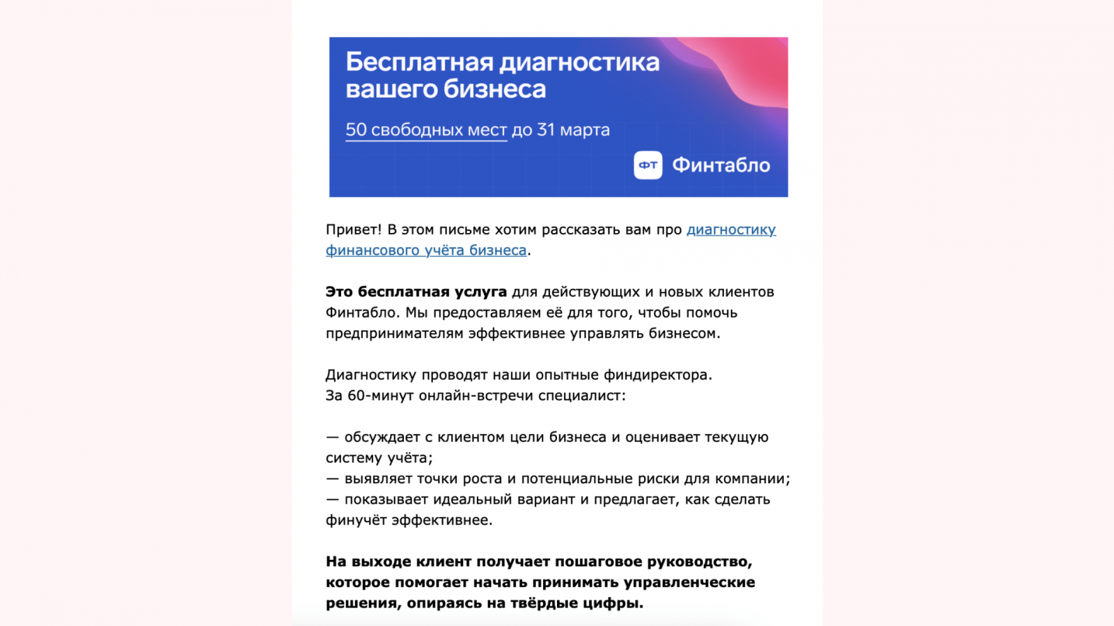 В итоге, получается комплексный прогрев, который и спрос может сформировать, и возражения обработать.