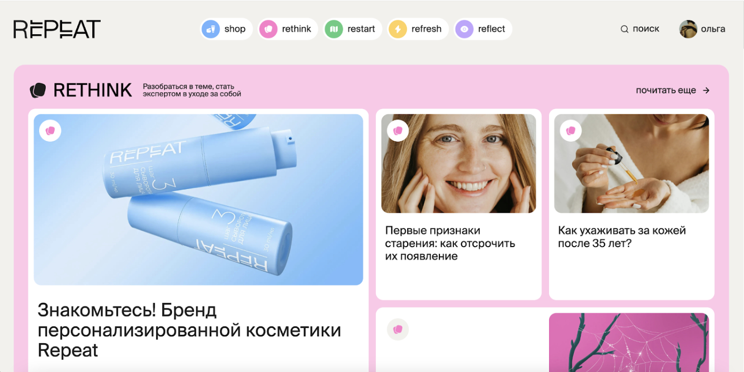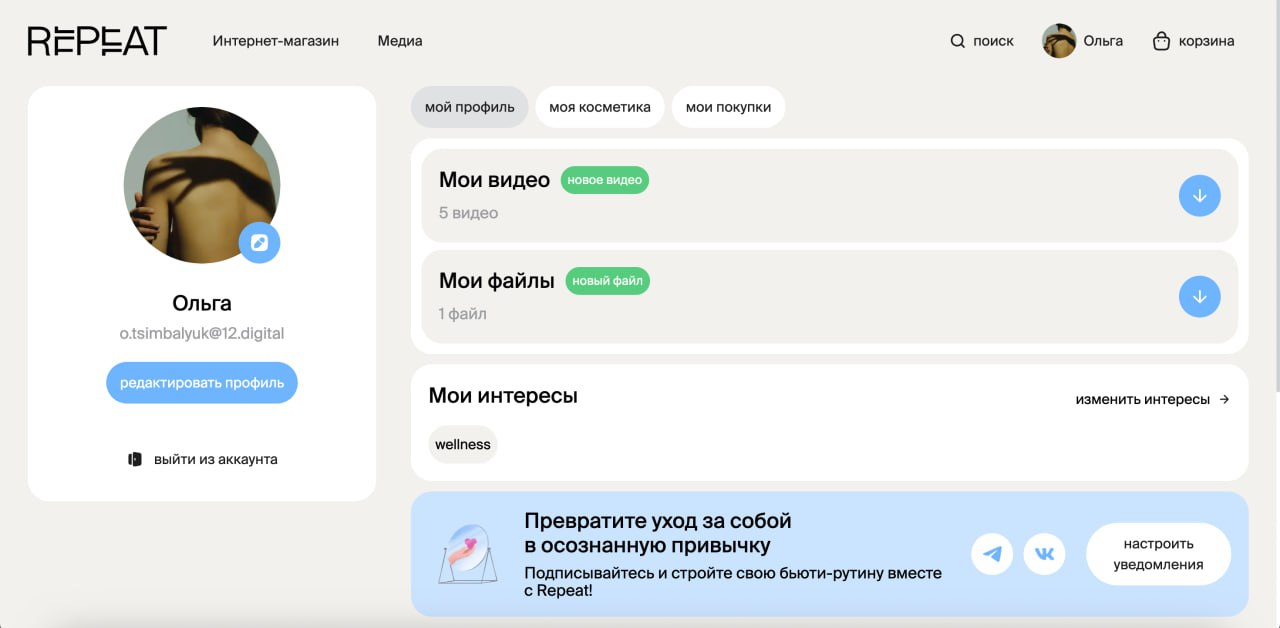 Repeat не только объединяет контент, но и создает ощущение поддержки. Это платформа, которая помогает выстроить свой путь в уходе за собой и с легкостью лавировать в бьюти-вселенной.