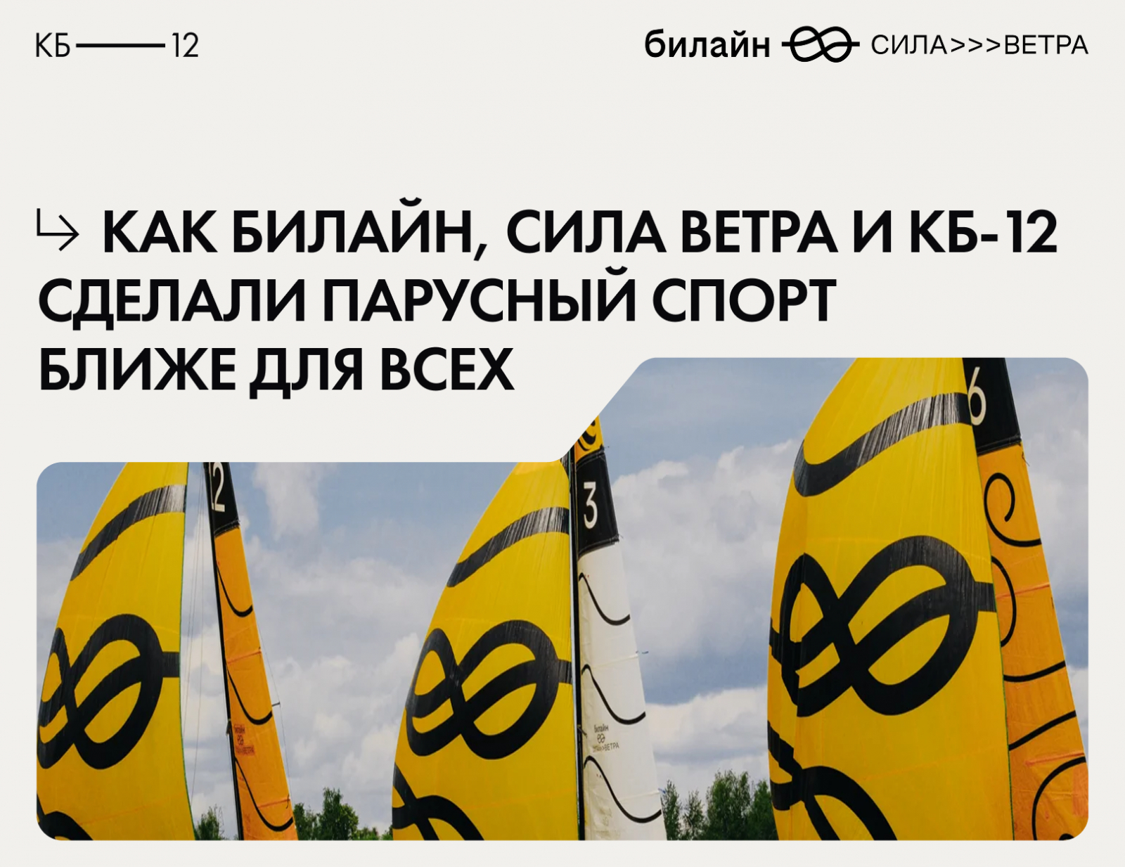 Кубок Билайна стал не просто спортивным событием. Он стал опытом, который объединяет людей, города и эмоции. Проект усилил восприятие Билайна как бренда, близкого молодежи и открытого новому опыту, показал, что спорт может быть вдохновляющим. Такой формат бренд-коммуникации, превратил рекламу в живой диалог с клиентом и стал примером успешного партнерского взаимодействия. Финал Кубка закрепил идею: сегодня сильные бренды — это те, кто не только говорит, но делает, кто выходит за границы формата и создает для людей пространство, в котором хочется проводить время. Этот проект — это пример того, как три команды, объединенные общей идеей, смогли превратить спортивное событие в культурное явление. Для Билайна — это долгосрочное сотрудничество с уникальным партнером Силой ветра, пример выстраивания отношения с новой аудиторией и популяризация парусного спорта. Для Силы ветра — возможность показать спорт как живую и доступную среду. Для КБ-12 — опыт создания адаптивной визуальной системы, которая становится частью настоящего события, а не просто визуальным фоном.