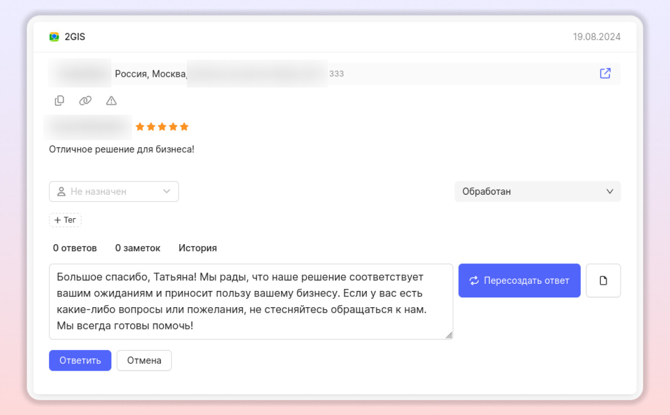 Интеграция нейросетей в работу с отзывами в нашем личном кабинете – про экономию времени и эффективную коммуникацию с клиентами.