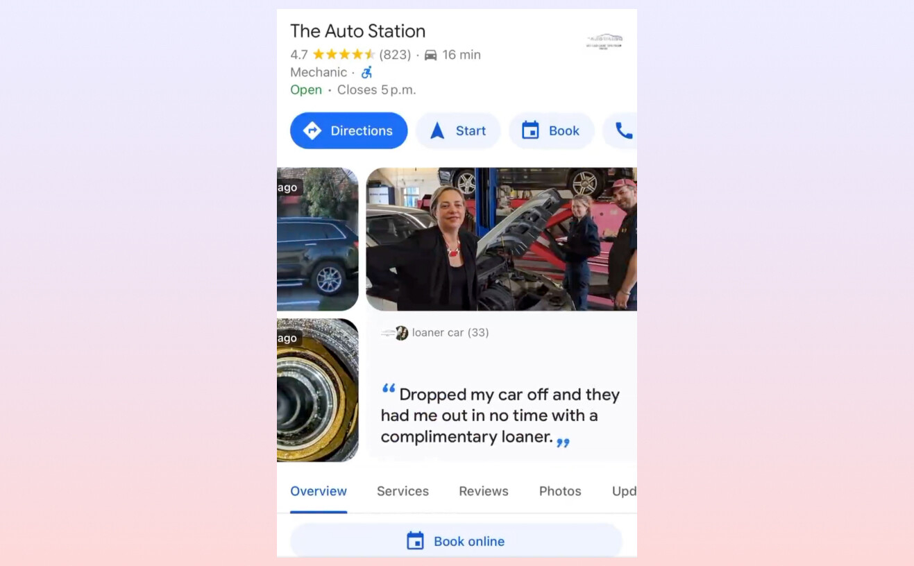 Эксперт по локальному SEO Дэвид Хиллс в соцсети Х обратил внимание на еще одну новинку в Google. Теперь в карусели фото отображаются фрагменты в виде цитат с отзывами пользователей.