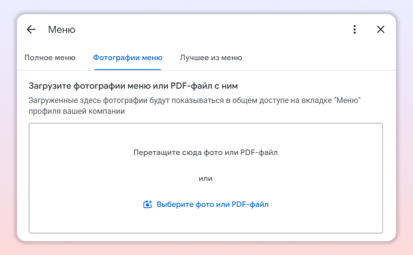 Теперь бизнес может загружать PDF-версию меню заведения прямо в свой Google Бизнес профиль.