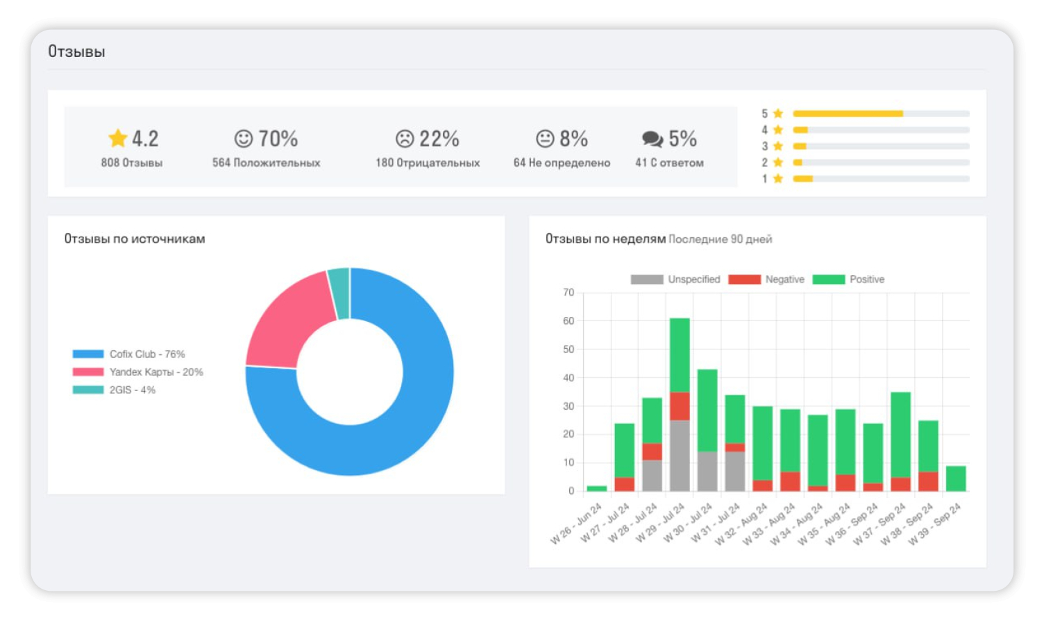 3. Анализировать отзывы и их содержание, чтобы лучше слышать гостей, оценивать конкурентов и мотивировать франчайзи Cofix смог через инструменты «Аналитику отзывов» и «Сравнение с конкурентами».