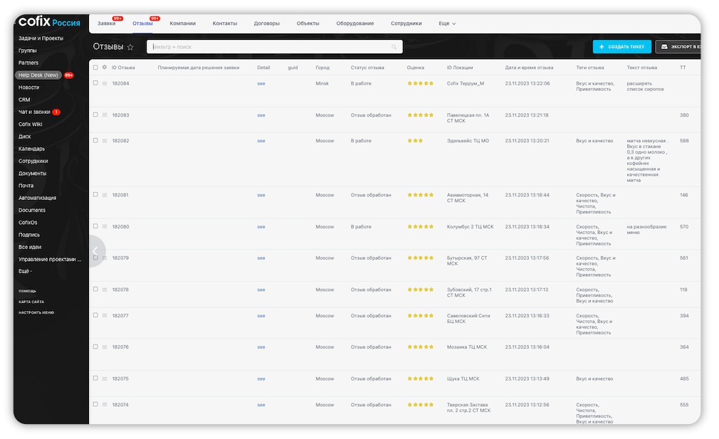 1. Найти решение для сбора источников, где есть карточки с данными Cofix, и собрать их собственную ERP-систему бренда - Cofix Business (система, которая помогает управлять всем бизнесом, поддерживая автоматизацию и процессы). Такой сервис необходим франчайзи, чтобы они могли из удобного для них ЛК создавать точки на картах и отвечать на отзывы.