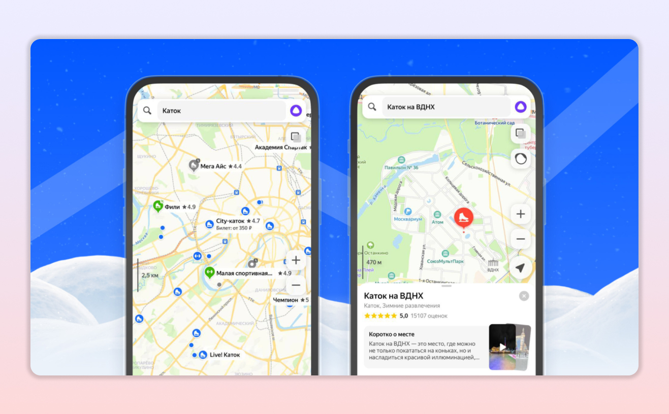 Яндекс добавил на Карты информацию о елочных базарах, резиденциях Деда Мороза, катках и других новогодних активностях. Многие организации для праздничного досуга появились на Картах впервые, кратно выросло число катков и елочных базаров.