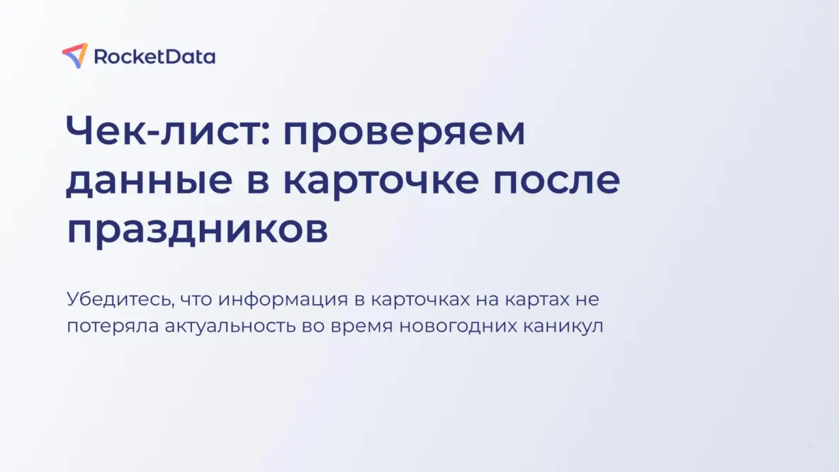 Проверьте свои карточки на картах по списку от RocketData, чтобы убедиться в актуальности данных о вашей компании.
