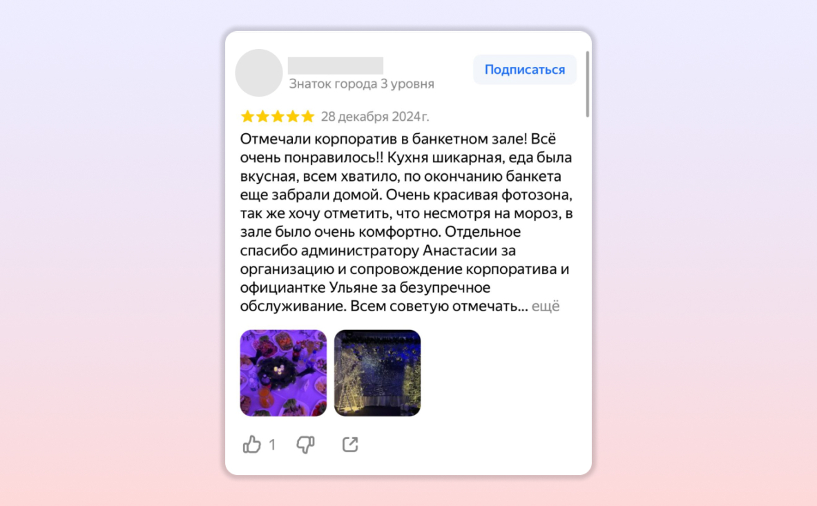Попросите клиентов рассказать, каким образом ваш товар, услуга или заведение дополнили их новогоднее настроение или разнообразили каникулярный досуг. Отдохнувшие пользователи будут охотнее оставлять обратную связь и делиться впечатлениями.