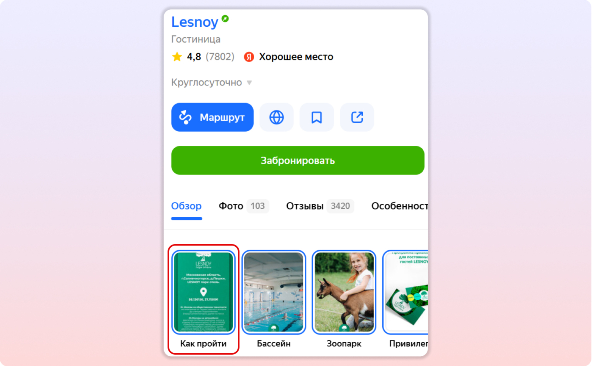 Например, если ваш офис находится в труднодоступном месте, опубликуйте сторис на Яндекс Картах с подробным описанием как вас найти