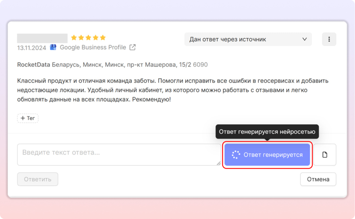 5. Ответы на отзывы с ИИ