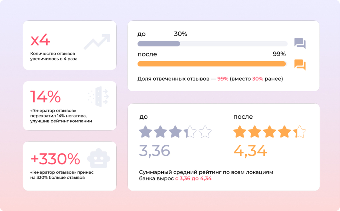 В итоге средний рейтинг компании на всех площадках вырос, а сотрудники начали вовлекаться в процесс. Отчеты об отзывах стали привычной частью рабочих будней.